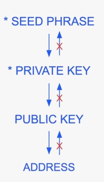 And that’s because the cryptographic algorithm allows you to generate data from the source but it doesn’t allow you to look at the data where it was generated due to encryption. So a seed phrase which is a combination of words will essentially be your wallet, this generates a private key (which allows you to access the network and use the Bitcoins that you have stored at your convenience). A public key is created to be used as a source to create a public wallet address that people use to send you bitcoins.